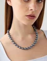 • Bayan Lacivert Cam İnci Detaylı Altın Kaplama Kolye