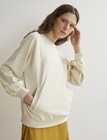 • Bayan Ekru Cep Detaylı Oversize Basic Sweatshirt