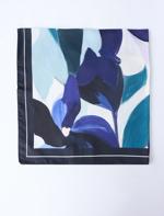 Lacivert Çiçek Desenli Çizgili Eşarp