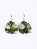 Yeşil Çiçek Desenli Yaprak Detaylı Küpe