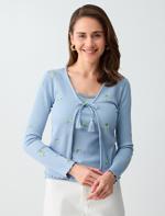 • Bayan Mavi Çiçek Nakışlı V Yaka Uzun Kollu Örme Hırka