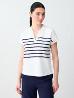 • Bayan Beyaz Çizgi Desenli Kolsuz V Yaka Örme Sweatshirt