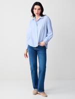 • Bayan Mavi Çizgi Desenli Taş Baskılı Dokuma Gömlek