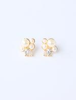 • Bayan Beyaz Çoklu Top İnci Detaylı Parlak Taşlı Küpe