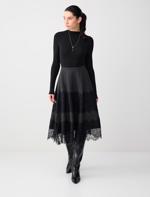 Antrasit Melanj Dantel Detaylı Yüksek Bel Yumuşak Dokulu Midi Etek