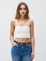 Beyaz Dar Kesim Açık Yaka Kısa Örme Bralet