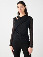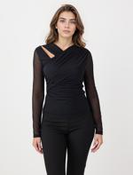 Siyah Dar Kesim Asimetrik Yaka Mesh Örme Bluz