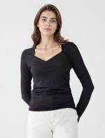 Siyah Dar Kesim Asimetrik Yaka Uzun Kollu Örme Bluz