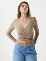 Dar kesimiyle vücuda oturan bu örme bluz, asimetrik yaka detayıyla modern ve özgün bir stil sunar. Uzun kollu formu sayesinde zarif bir siluet ve konforlu bir kullanım kazandırır.