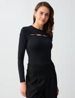 Siyah Dar Kesim Bisiklet Yaka Uzun Kollu Bluz