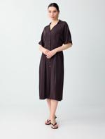 • Bayan Kahverengi Dar Kesim Düğme Detaylı Gömlek Yaka Midi Elbise