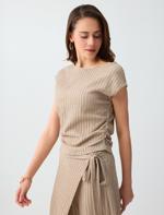 Vizon Dar Kesim Kayık Yaka Kolsuz Çizgili Örme Bluz