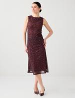 • Bayan Kahverengi Dar Kesim Kayık Yaka Puantiyeli Mesh Midi Elbise