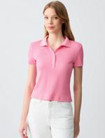 • Bayan Pembe Dar Kesim Kısa Kollu Gömlek Yaka Örme Tişört