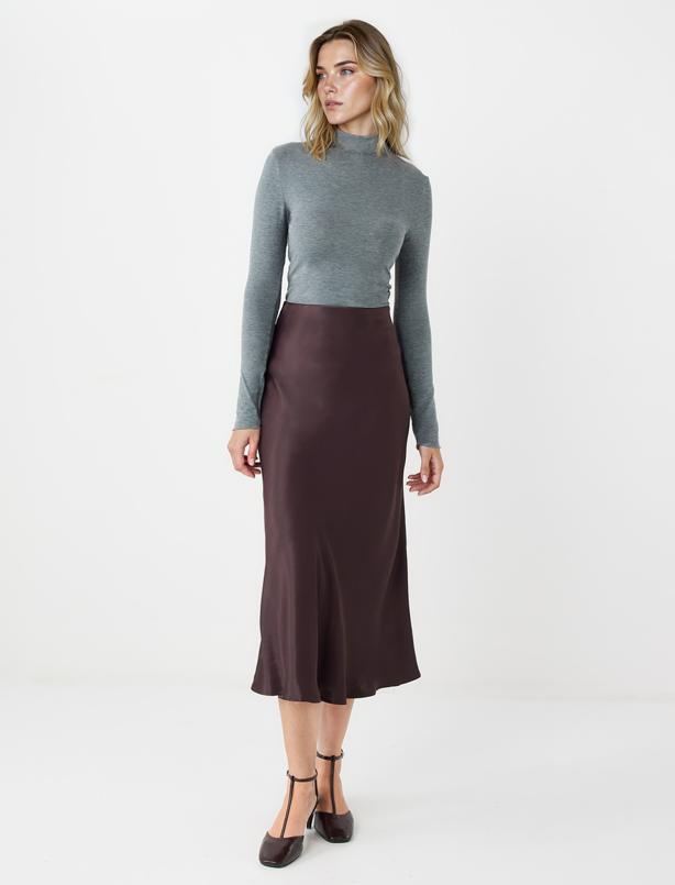 Dar kesimiyle vücuda oturan bu örme bluz, sıfır yaka formu ve uzun kollu tasarımıyla sade bir şıklık sunar. Yumuşak melanj dokusu sayesinde gün boyu konfor ve zarif bir görünüm kazandırır.