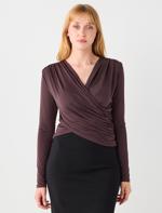 • Bayan Kahverengi Dar Kesim Uzun Kollu Çapraz Yaka Örme Bluz