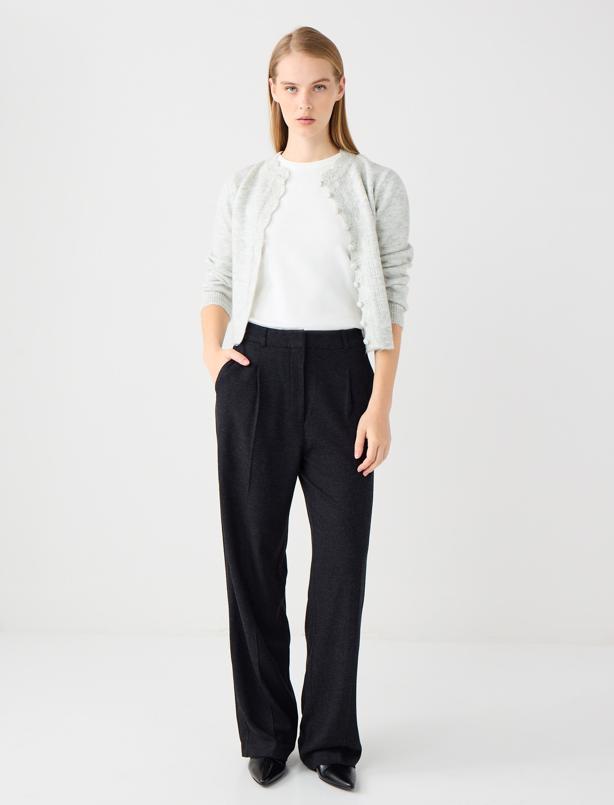 Dar kesimiyle feminen bir siluet oluşturan bu örme bluz, uzun kollu formu ve dantel detaylarıyla zarif bir görünüm kazandırır. Esnek yapısı sayesinde konforlu ve şık bir kullanım sunar.