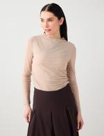 Bej Dar Kesim Uzun Kollu Dik Yaka Taşlı Mesh Örme Bluz