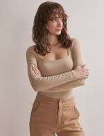 Vizon Dar Kesim Uzun Kollu Kare Yaka Fitilli T-Shirt