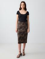 Karışık Dar Kesim Yüksek Bel Leopar Desenli Örme Midi Etek