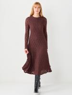 • Bayan Kahverengi Dar Kesim Yuvarlak Yaka Dantelli Uzun Elbise