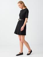 • Bayan Siyah Dar Kesim Yuvarlak Yaka Dirsek Kol Mini Örme Elbise