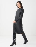 Antrasit Degaje Yaka Yumuşak Dokulu Midi Örme Elbise