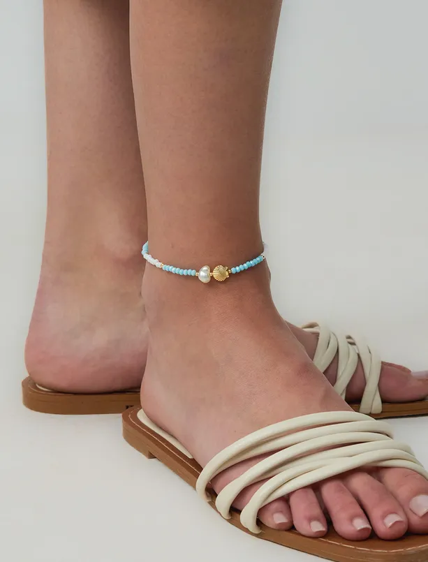 Mavi Deniz Kabuğu Figürlü İnci Detaylı Halhal