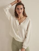 Ekru Derin V Yaka Düğme Detaylı Ceket