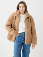 • Bayan Kahverengi Dik Yaka Cep Detaylı Fermuarlı Peluş Mont