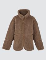 Kahverengi Dik Yaka Cep Detaylı Fermuarlı Peluş Mont