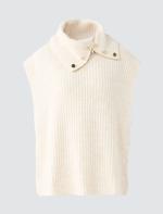 Ekru Dik Yaka Fermuar Detaylı Triko Süveter
