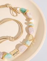 • Bayan Bej Doğal Taş Detaylı İpli Ayarlanabilir Kolye