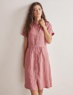• Bayan Pembe Düğmeli Kısa Kollu Midi Boy Keten Elbise