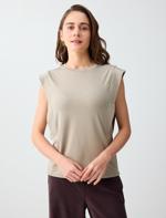 Vizon Düz Kesim Bisiklet Yaka Kolsuz Örme Bluz