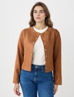 • Bayan Kahverengi Düz Kesim Çıtçıt Detaylı Süet Ceket
