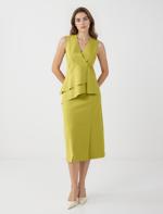 • Bayan Yağ Yeşili Düz Kesim Normal Bel Midi Örme Etek