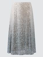 Gri Düz Kesim Normal Bel Payetli Midi Etek