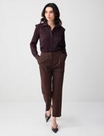 • Bayan Kahverengi Düz Kesim Uzun Kollu Desenli Dokuma Gömlek