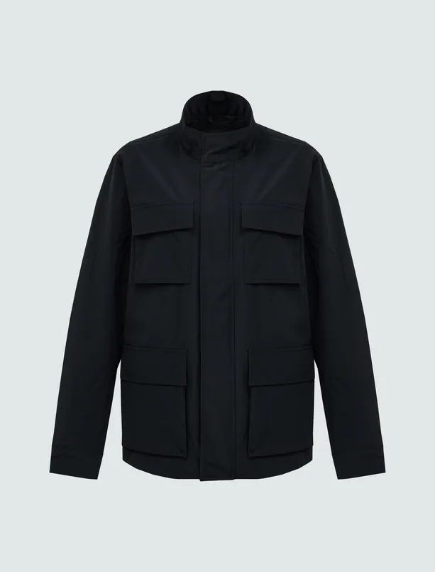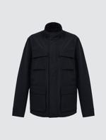 Siyah Düz Kesim Uzun Kollu Yakası Cep Detaylı Erkek Mont