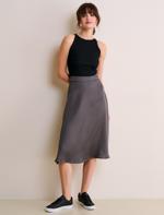 Antrasit Düz Kesim Yüksek Bel Saten Etek