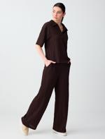Kahverengi Düz Kesim Yüksek Bel Uzun Örme Pantolon