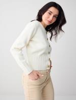 • Bayan Ekru Düz Kesim Yuvarlak Yaka Uzun Kollu Triko Hırka