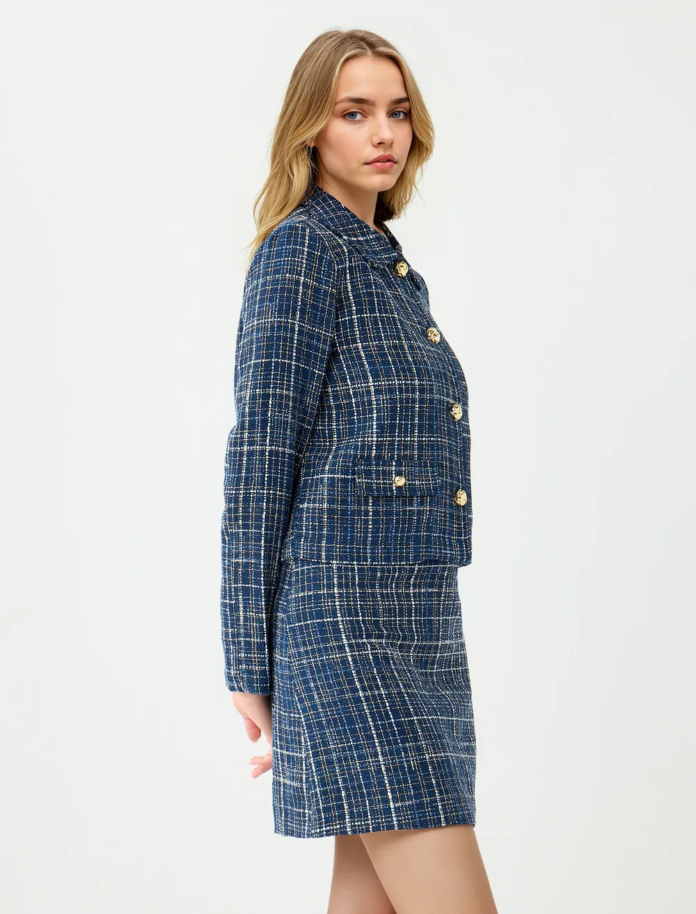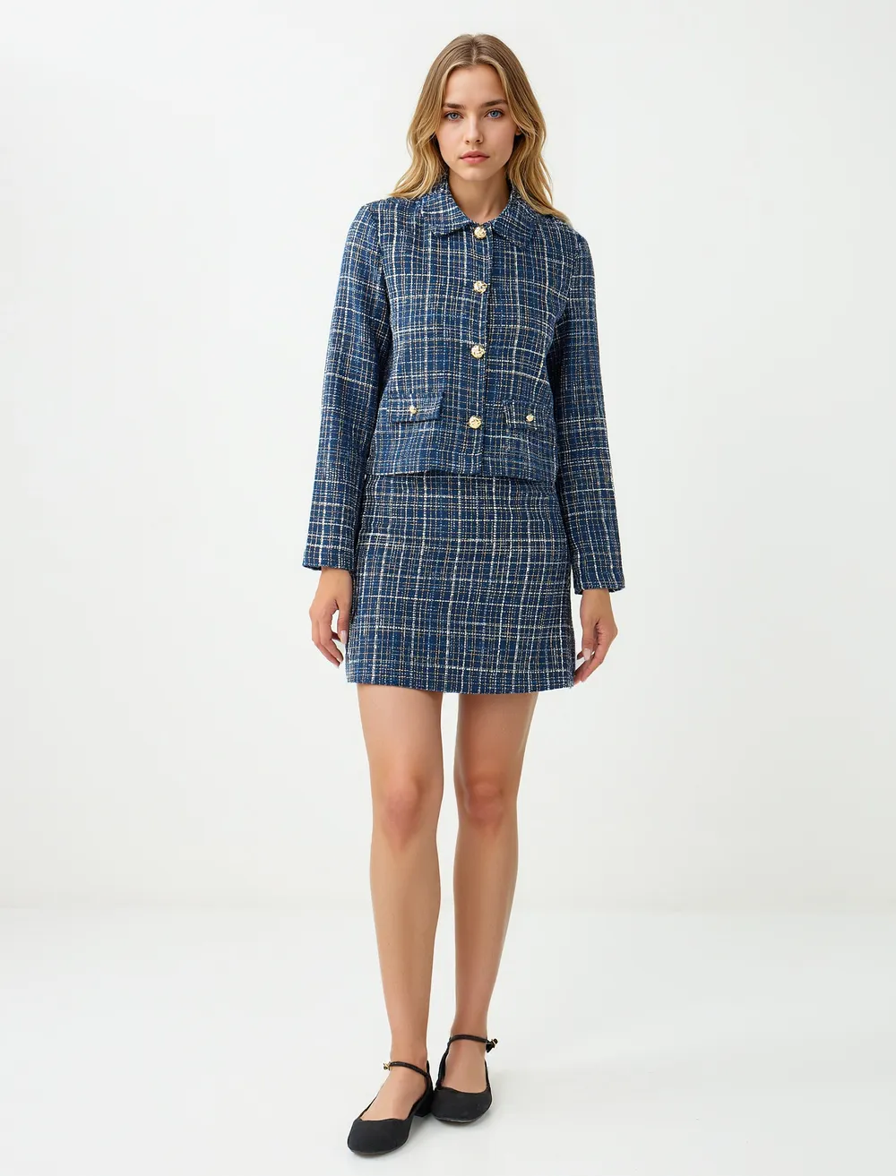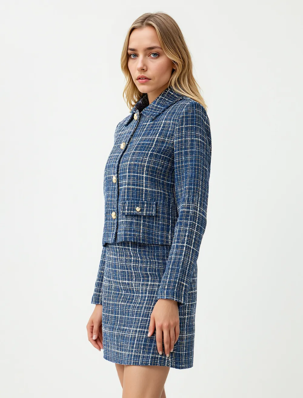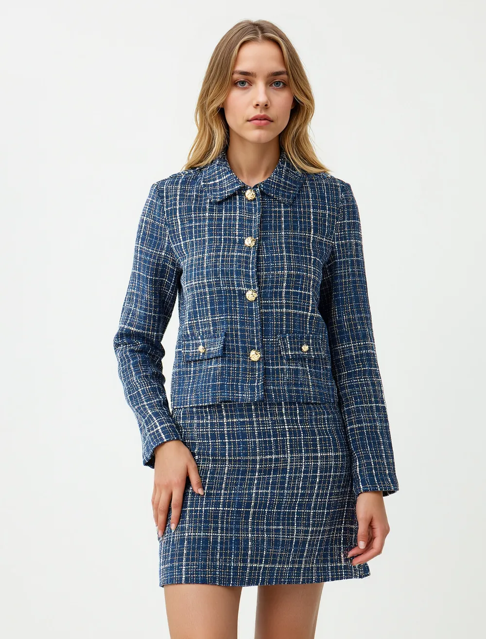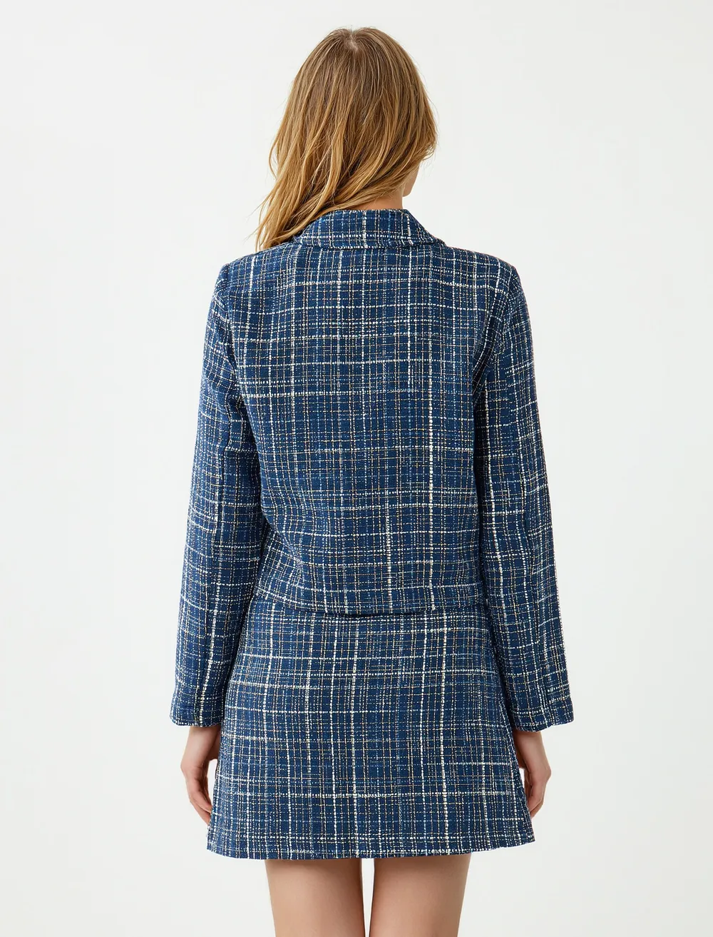 Ekose Desenli Gömlek Yaka Düğme Detaylı Ceket