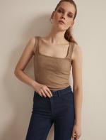 Deve Tüyü Fitilli Askılı Kare Yaka Atlet