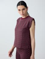 • Bayan Bordo Geometrik Desenli Bisiklet Yaka Vatkalı Örme Tişört