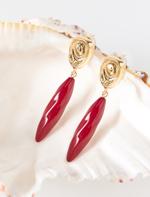 Bordo Geometrik Figürlü Sallantılı Küpe