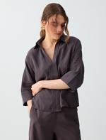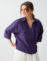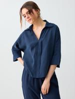Lacivert Gömlek Yaka Truvakar Kol Modal Dokuma Bluz