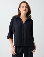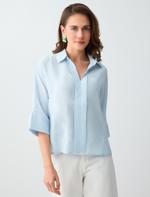 • Bayan Mavi Gömlek Yaka Truvakar Kol Modal Dokuma Bluz