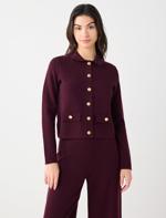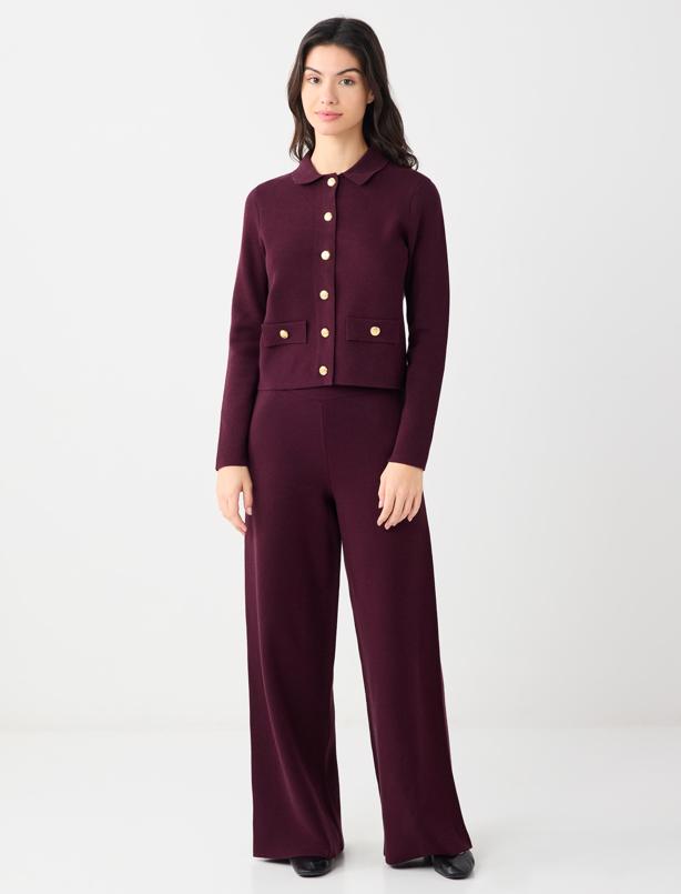 • Bayan Bordo Gömlek Yaka Uzun Kollu Düğme Detaylı Triko Hırka